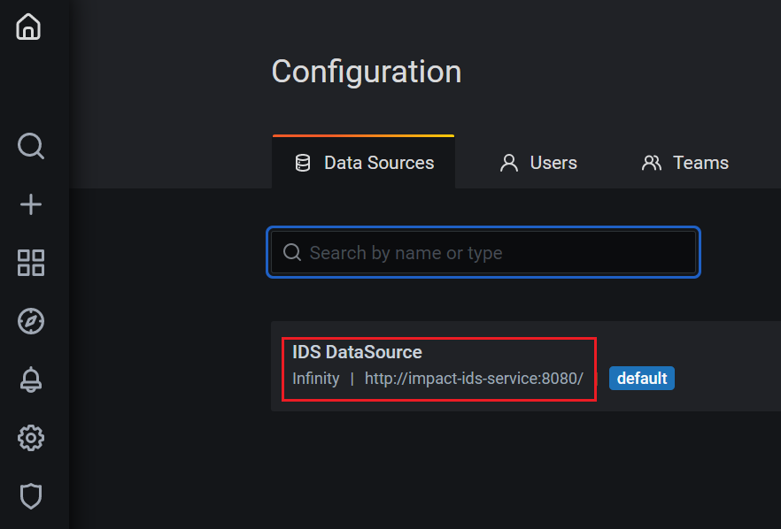 - Click the name of the IDS DataSource to edit the Data Source.