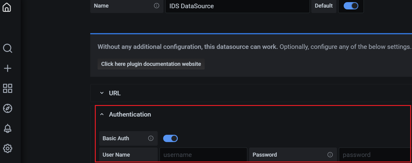 Intelligent Data Store Data APIs require authentication for access and this must be configured manually in the Grafana dashboards to access the Data APIs to fetch the data.