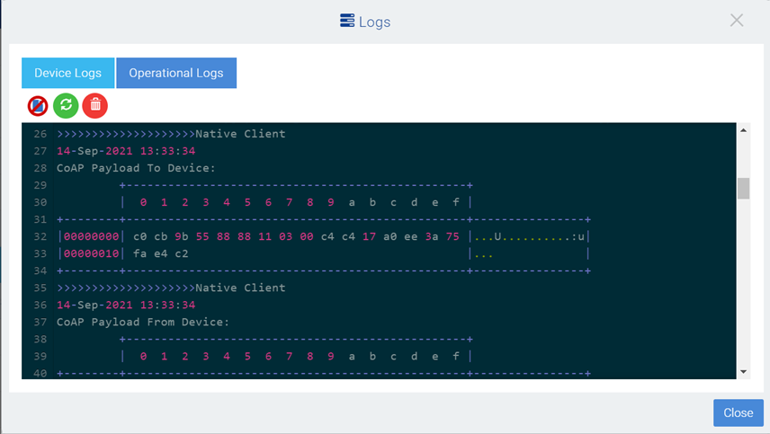 IMPACT IoT supports device tracing functionality for the devices. Using the tracing capability it is possible to view the logs of a device as part of the debugging process. The log information can be retrieved per device by applying the trace.